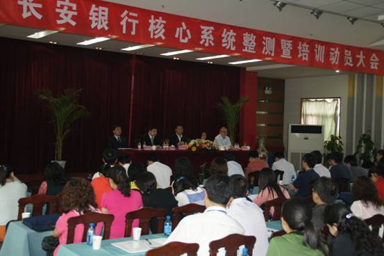 2010年5月4日,我行在西安延炼商务酒店召开核心业务系统整测及培训动员大会,党委书记、董事长孙宗宽,副行长王作全,资深经理黎惠民出席大会。这次大会标志着我行核心业务系统项目建设进入转场后的关键时刻。整体测试及业务培训能否达到预期效果,将对于我行6月初开始的系统模拟演练和7月2日系统切换上线运行,以及后续业务发展和经营管理具有重要意义。
