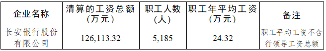 按照《陕西省人民政府关于改革国有企业工资决定机制的实施意见》(陕政发〔2018〕36号)的规定,现将长安银行股份有限公司2024年工资分配信息披露如下: